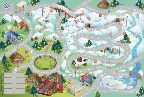 Kindervloerkleed – Playground Bergen, is een speelkleed voor jonge kinderen. Brrrrr ga op skivakantie of ga een dagje op pad door de bergen. En beleef hierdoor de leukste avonturen.