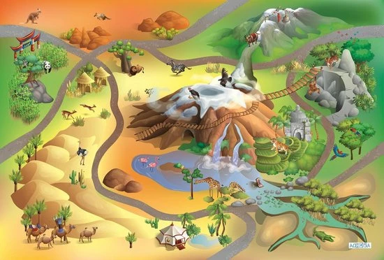 Ideaal tijdens het buitenspelen, dit speelkleed van ACHOKA! Hij is waterproof en heeft een mooie print van verschillende dieren in hun eigen omgeving. In de Connect-collectie koppel je alle kleden eenvoudig aan elkaar en lopen de wegen op de verschillende kleden in elkaar over. Zo kun jij verschillende landschappen en stadsdelen aan elkaar koppelen. Gebruik het tafelkleed ook als speelkleed!