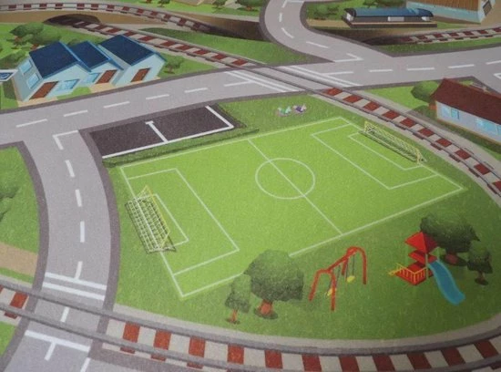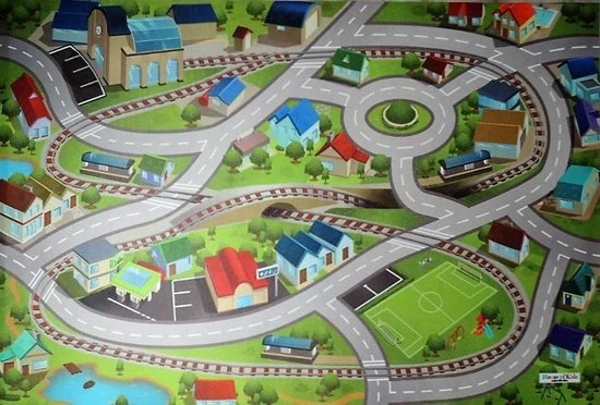 Leuk en makkelijk schoon te maken speelkleed van House of Kids! Dit speelkleed is van de Speed Way-collectie. In deze collectie koppel je alle kleden eenvoudig aan elkaar en lopen de wegen op de mat in elkaar over. Zo kun jij verschillende landschappen en stadsdelen aan elkaar koppelen. Het kleed heeft een goede hechting op de vloer door de latex antisliponderkant. Dit kleed staat garant voor urenlang speelplezier!