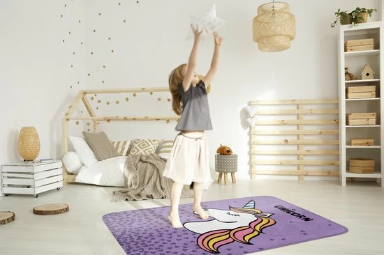 Decoreer de kinder- of speelkamer met dit schattige vloerkleed van ACHOKA. Het vloerkleed heeft een rechthoekige vorm met een eenhoornprint, is superzacht en heeft een antislip-achterkant zodat hij goed op zijn plek blijft liggen.