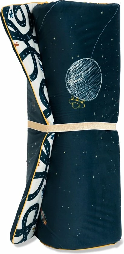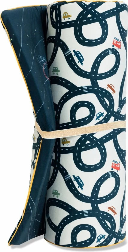 Het formaat van 140×80 maakt de speelmaat ideaal om op te leren rollen, kruipen en samen te knuffelen, een boek te lezen of te stoeien. Dus perfect voor babies en jonge kinderen. Maar ook oudere kinderen hebben veel speelplezier met deze speel mat. Denk aan het bouwen van hutten of rol hem op om bijvoorbeeld paardje mee te rijden. Laat de creativiteit van de kinderen bepalen op welke manier deze mat gebruikt word. Ook als logeermatras of campingmat is deze speelmat ideaal te gebruiken.