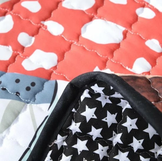 Dit speelkleed bestaat voor 100% uit katoen en is hierdoor lekker zacht. Het speelkleed heeft een dikte van ca. 1cm. Hierdoor heeft je baby of kind lekkere warme voetjes op dit kleed en is er geen extra ondergrond nodig.