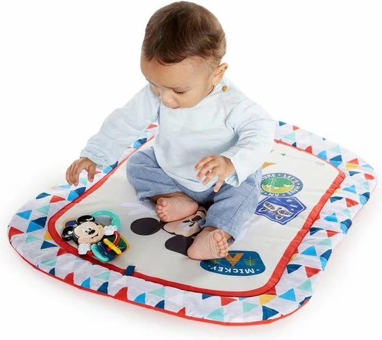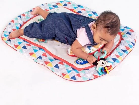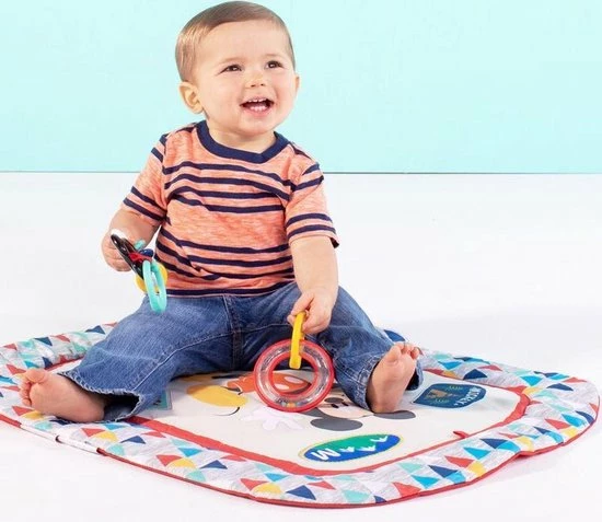Bezoek het buitenleven, rechtstreeks vanuit je woonkamer! Disney Baby’s Mickey Mouse prop mat helpt je kleine kampeerder zijn badge van plezier te verdienen. Met felle kleuren en een lachende Mickey wordt buiktijd een avontuur.