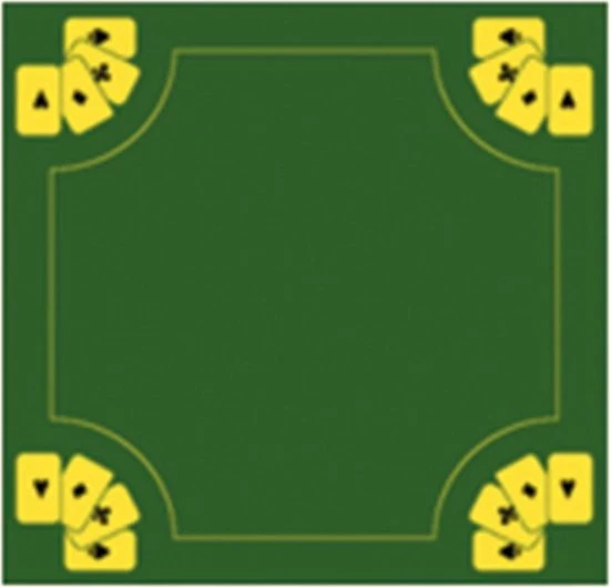 Dit Buffalo vierkante kaartkleed is 70 cm lang en 70 cm breed. Het kaartkleed is voorzien van antislip onderzijde. Het kaartkleed heeft lijnen om het speelveld en afbeeldingen van speelkaarten in de hoeken. Het Buffalo kaartkleed is geschikt voor diverse kaartspellen.