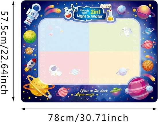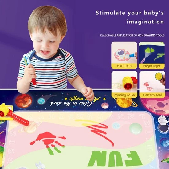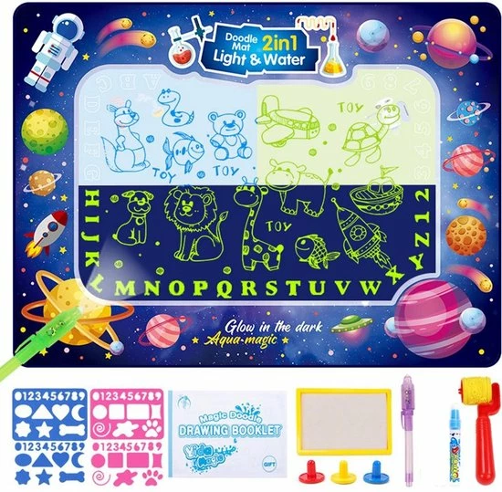 De Buxibo doodle mat/tekenmat maakt het mogelijk voor kinderen om oneindig te tekenen en te kliederen zonder enige zorgen over vlekken. Zoals de titel het verklapt is deze tekenmat magisch. De mat werkt op waterbasis hierdoor verdwijnen tekeningen na ongeveer 5 minuten. Verwezenlijk je fantasieën en teken je leukste ideeën op deze magische tekenmat.