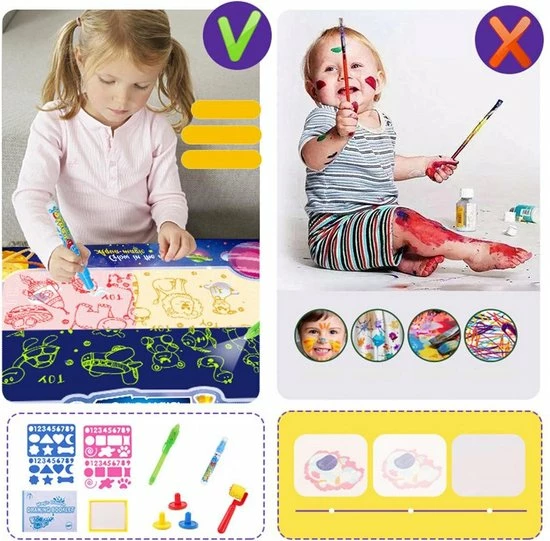 Kinderen die tekenen gaat gepaard met een hoop geknoei en vlekken. Met deze tekenmat is dat probleem verholpen. Je hoeft je geen zorgen te maken over inkt die op de bank terecht is gekomen of een dikke streep door de kleding van de kleintjes. Kinderen kunnen creatief bezig zijn en zich uitleven zonder dat de ouders zich zorgen hoeven te maken over vlekken.