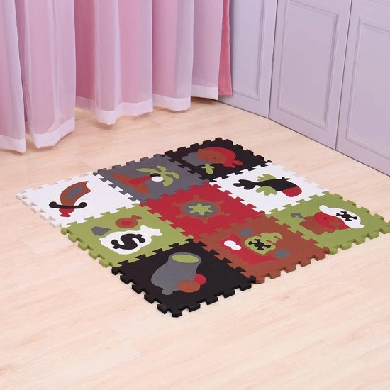 Niks is leuker dan je kind zien spelen en hem of haarzelf zien ontwikkelen. Het spelen is een heel belangrijk en cruciaal onderdeel van de ontwikkeling van het kind en moet dan ook ten alle tijden worden gestimuleerd door de ouders van het kind. Speelmat puzzel 9 stuks. Met deze puzzelmat leren kinderen spelend aan hun fantasie en motoriek te werken. De baby speelkleden hebben af- uitneembare vormpjes, bestaat uit 9 verschillende plaatjes. Het speelkleed is gemaakt van een zacht, warm en soepele EVA foam. De foam is zeer gemakkelijk schoon te houden.