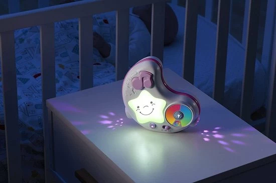Verwijderbare maanvormige projector en nachtlampje voor het nachtkastje.