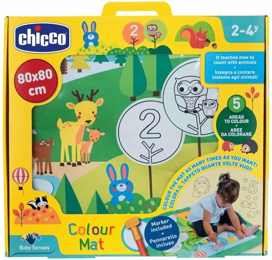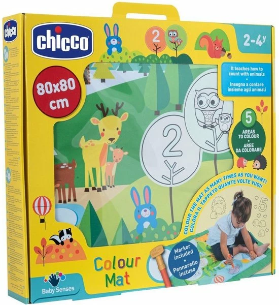 Hoe leuk is dit kleurrijke Nummers Inkleur Speelkleed van Chicco? Je kindje begeeft zich net in een park vol met dieren als hij/zij hierop zit of ligt. Het vloerkleed is groen aan de buitenranden en heeft allerlei verschillende dieren en planten in verschillende kleuren en vormen afgebeeld.