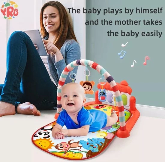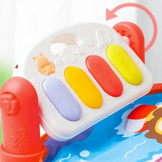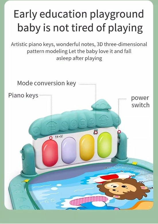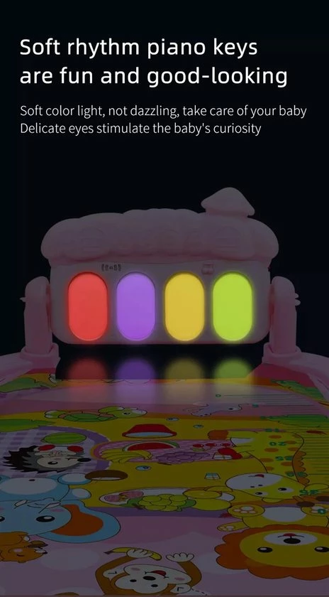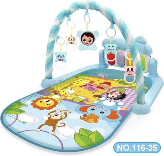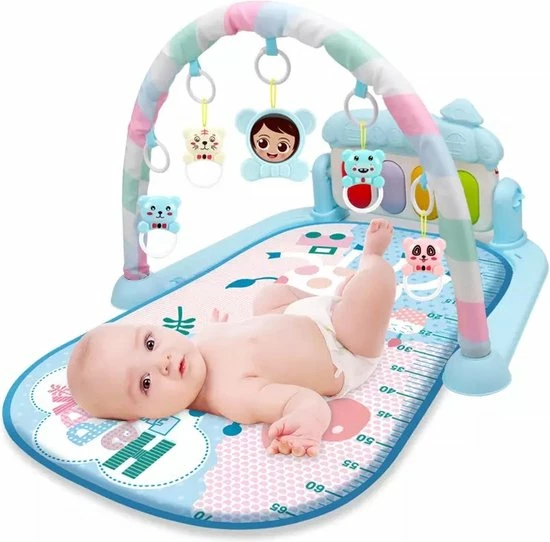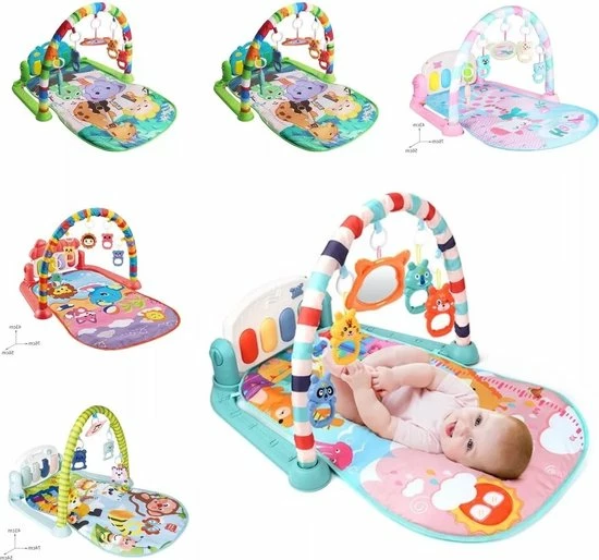 Met deze interactieve speelmat zal iedere baby plezier beleven en nieuwe ontdekkingen doen. Terwijl uw baby rustig op mat ligt of zit, kan hij of zij spelen met de diverse interactieve elementen rondom en boven de speelmat. Door de grote variëteit aan elementen, is er altijd wel iets dat de aandacht van uw baby trekt en waar hij of zij graag mee speelt. Voorbeelden van de onderdelen bij dit speelkleed zijn een spiegeltje, verschillende hangende vormen in diverse kleurtjes en objecten in de vorm van dieren. De speelmat is niet alleen geschikt voor liggend spelen, ook baby’s die al kunnen zitten, hebben genoeg te ontdekken rondom de speelmat. Zo zijn er verschillende knoppen en vormpjes die geluiden maken. Dit interactieve speelkleed laat uw baby’s spelenderwijs kennismaken met diverse vormen, structuren en geluiden, waarbij er voldoende afwisseling is om lange tijd de aandacht van uw baby te trekken. De speelmat zelf is zeer comfortabel en zorgt ervoor dat uw baby niet direct op de vloer hoeft te zitten of liggen tijdens het spelen. De elementen rondom de speelmat zijn gemakkelijk te reinigen en uitsluitend gemaakt van materialen van hoogwaardige kwaliteit, die geheel veilig zijn voor kinderen van alle leeftijden.
