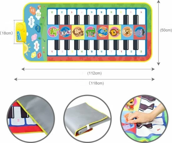 Verder is de Piano Mat van zachte en sterke maar vooral veilige stoffen gemaakt. Het opbergen of meenemen van de Piano Mat is kinderspel doordat de mat eenvoudig opvouwbaar is.
