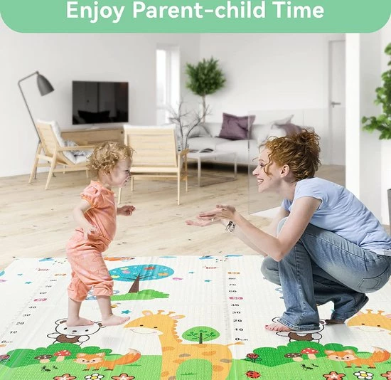 Deze prachtige XXL speelmat gemaakt van hoogwaardig xpe-schuim maakt van je kinderkamer of woonkamer in een handomdraai een kindvriendelijke speelvloer. Naast het zachte materiaal met anti-slip oppervlakte zijn de matten geluiddempend en houdt hij optrekkende kou van de vloer tegen. De mat is ook ideaal om te leren kruipen en beschermd het kind in het geval van een val.