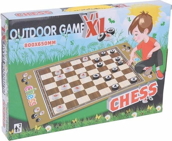 Dit is een strategisch spel! Gebruik je hele brein om je tegenstander in slechts een paar zetten in schaakmat te zetten! Kun jij de koning omwerpen? Het bord is geprint op een grote mat, zodat je ook lekker buiten en op de grond kan spelen.