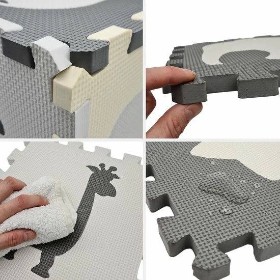 EVA schuim is gemaakt van waterafstotend materiaal en is daarom met een doekje gemakkelijk af te nemen. Zo kunnen de kids genieten van een middagsnack tijdens het spelen zonder dat jij je zorgen hoeft te maken over de vloer!