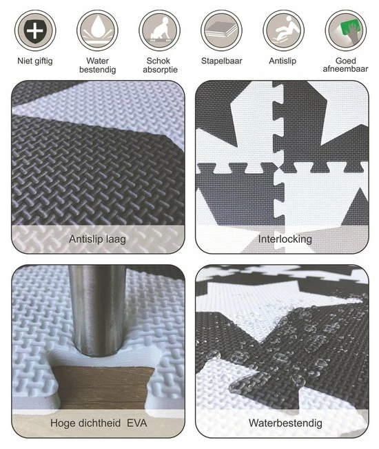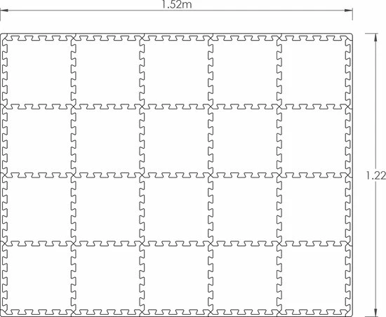 -Totale afmetingen: 152 x 122 cm. Afmetingen enkele mat (lengte x Breedte x Dikte): 30cmx30cmx1cm