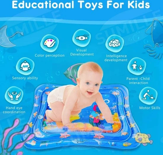 Ben je op zoek naar een leuke waterspeelmat voor uw kleintje, onze comfortabele baby waterspeelmat is het perfecte speeltje voor kleine kinderen. Ook is het goed voor het ontwikkelen van stevige hoofd-, nek- en schouderspieren en voor het verfijnen van de hand-oogcoördinatie, fijne motoriek en sociale vaardigheden. De heldere, kleurrijke zeedieren en opvallende illustraties zorgen ervoor dat je baby urenlang kan spelen.