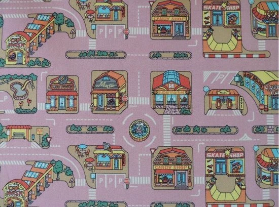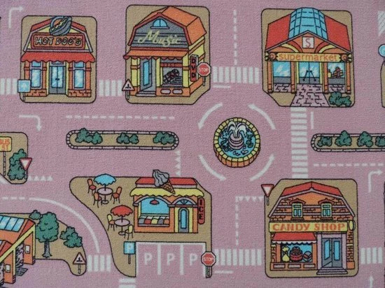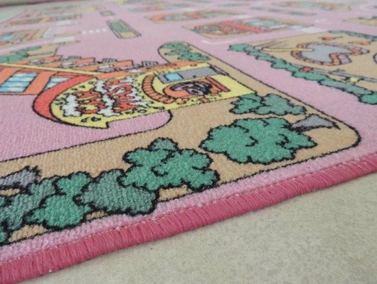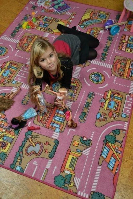 Dat alleen jongens graag met auto’s spelen is natuurlijk onzin. Ook meisjes kunnen zich hier uren mee vermaken. Dit mooie speelkleed is door de kleuren en vormen hartstikke leuk voor meisjes om op te spelen. Hiermee helpt u de fantasie van uw kind een handje en kan uw kind allerlei leuke avonturen op de weg beleven. Winkels, een luchtballon, een reuzenrad en meer vindt u allemaal terug op dit vloerkleed. De vrolijke speelmat is ontzettend leuk voor peuters, kleuters en zelfs iets oudere kinderen. Hier kan uw kind dan ook jarenlang plezier van hebben. Het tapijt is erg makkelijk te onderhouden en heeft een antislip onderkant voor de veiligheid tijdens het spelen. De beschikbare afmetingen zijn 140x200cm. Als uw kind erg graag samen speelt of al wat ouder is dan is de grotere maat aan te raden terwijl u met wat minder ruimte uw kind nog steeds een groot plezier doet met deze speelmat.