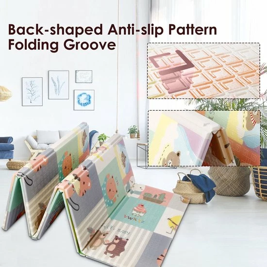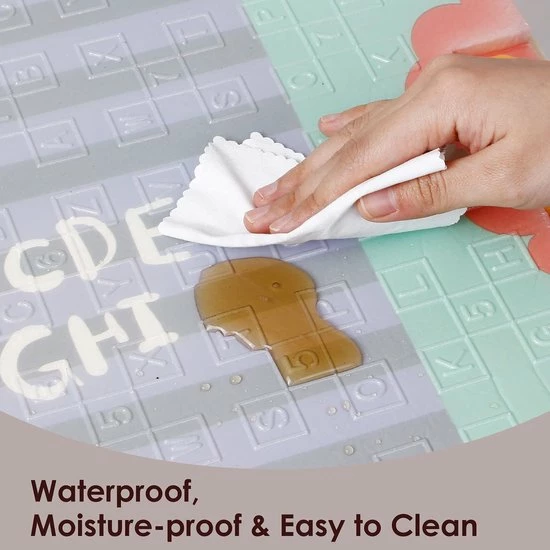 Dankzij het unieke ontwerp en de antislippatronen in de vorm van cijfers en letters stimuleert onze mat tactiel leren en stimuleert hij de verbeelding en fijne motoriek. Groot van formaat, het zal een ideale speeltuin voor de baby te vormen, zodat hij kan spelen en kruipen op handen en voeten zonder pijn te doen zijn knieën.Dit gigantische tapijt vouwt in 3 seconden. Gemakkelijk op te bergen dankzij de hoes, het is gemakkelijk te transporteren in geval van uitgang. Zacht, comfortabel en dik, het biedt thermische bescherming tegen de kou en biedt geluidsisolatie. De buren beneden zullen niet meer klagen over het geluid! Waterdicht, het is gemakkelijk schoon te maken. Was met een vochtige doek of spons eventuele vlekken met een hand af. Je kunt het thuis of buiten gebruiken.