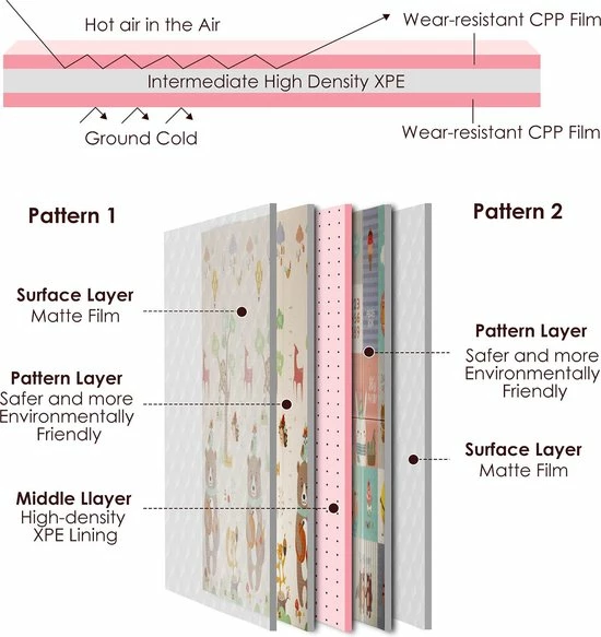 Dubbelzijdige baby vloermat, lichtgewicht en gemakkelijk mee te nemen naar buiten met de hoes.