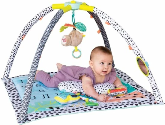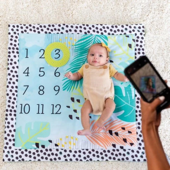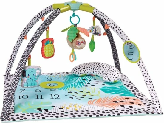 Ook kan het gebruikt worden als babygym, speelmat en nog veel meer. Dankzij het unieke Twist & Fold-plooisysteem is het makkelijk op te bergen en mee te nemen. Op de speelmat zitten cijfertjes zodat je leuke foto’s kan maken van je kindje vanaf de geboorte, zodat je op een leuke manier kan laten zien hoeveel maanden je kindje is. Het zachte kussen zorgt ervoor je kleintje comfortabel op z’n buik ligt.