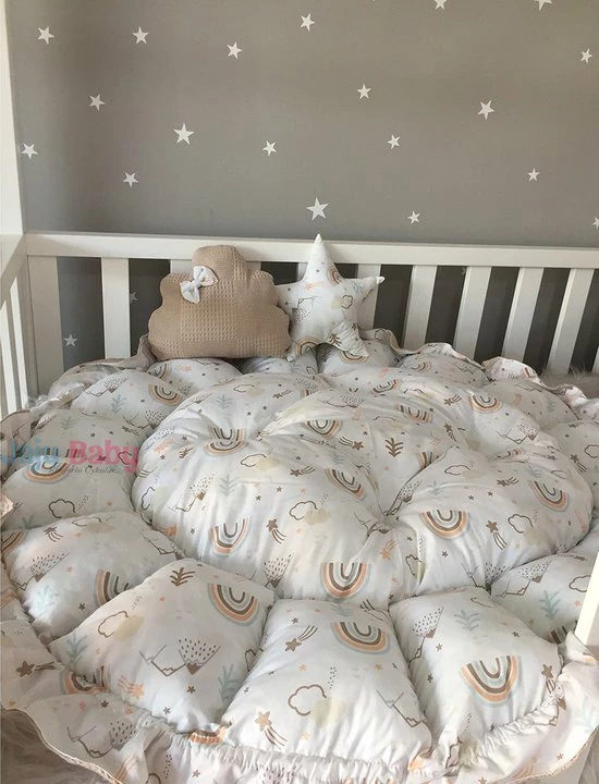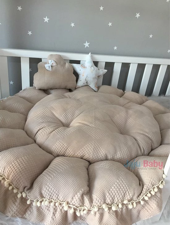 Spelen is de beste manier voor de mentale ontwikkeling van je baby en de interactie met de voorwerpen om hem heen. Jaju Baby speelmat is speciaal gemaakt om je baby comfortabel en veilig te laten spelen. Geproduceerd van 100% biologische katoenen luxe stof is wasbaar in de machine. Geschikt voor baby’s tot 2 jaar. Er wordt gebruik gemaakt van spons- en parelvezels die vocht en stoom absorberen. Het laat de baby niet zweten.