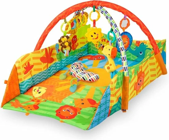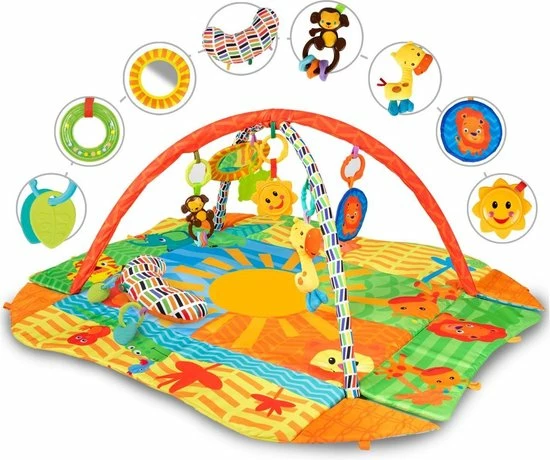 Kidwell Babygym, Eden. Dit prachtige kleurrijke speelkleed is bij uitstek geschikt om cadeau te doen op een babyshower. In deze fantastische babygym kan een kind de hand-oog coördinatie goed ontwikkelen tijdens interactief spelen met de speeltjes. Het zachte kleed maakt dat het fijn aanvoelt op de huid van de baby. Het artikel is gemakkelijk in elkaar te zetten, er is geen gereedschap nodig. Het artikel is geschikt voor kinderen van 0 tot 3 jaar. De opstaande randen maken het dat uw kind beter beschermd is.