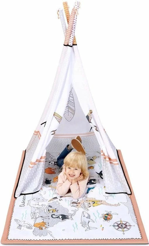 - 3 in 1 speelkleed – TIPPY heeft maar liefst 3 functies: een educatief speelkleed voor de jongste kinderen, een speelplaats voor oudere kinderen (tipi) en een picknickkleed voor kinderen van alle leeftijden. Je koopt één product, je krijgt een unieke combinatie van functionaliteit.