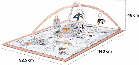 - Het speelkleed heeft verstelbare, zachte speelbogen – het hangende speelgoed kan vrij worden bewogenen op elke hoogte worden geplaatst, zodat je kind zijn of haar geheugen en gezichtsvermogen kan oefenen.