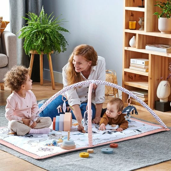- De speelbogen zijn gemakkelijk los te maken en het kleed kan worden opgevouwen – TIPPY is gemakkelijk op te bergen, zelfs in een klein appartement.