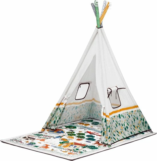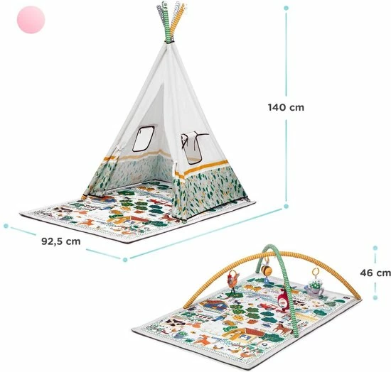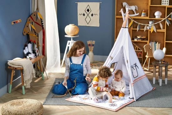 - de tent met twee vensters stimuleert de fantasie en moedigt het kleintje aan om te spelen, zodat er samen met de ouder gespeeld kan worden.