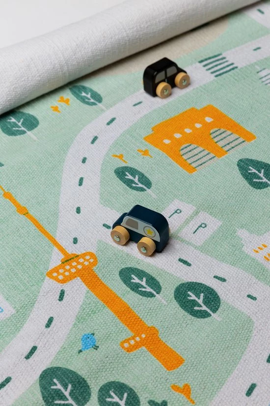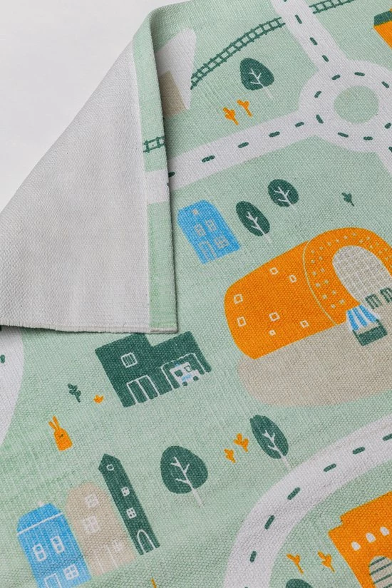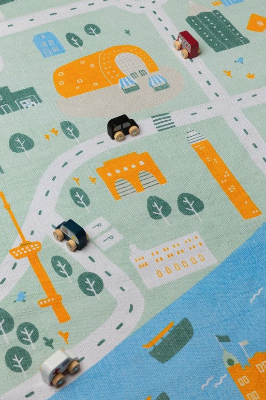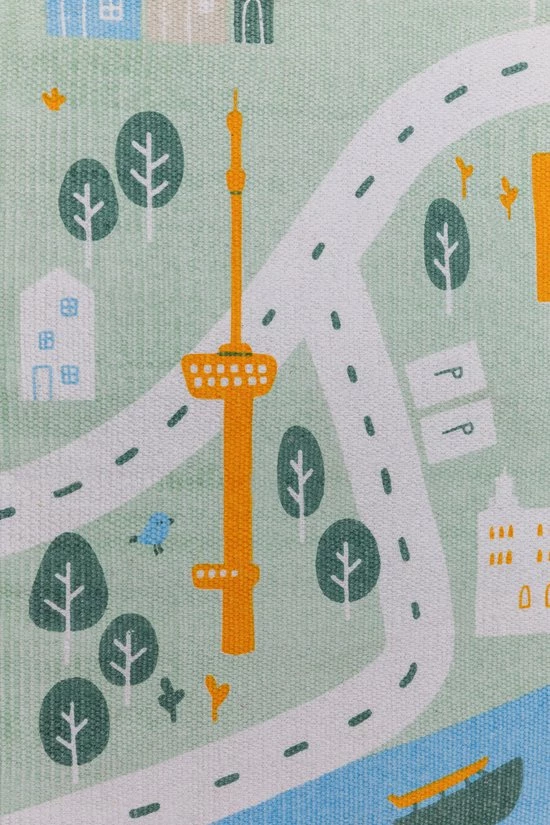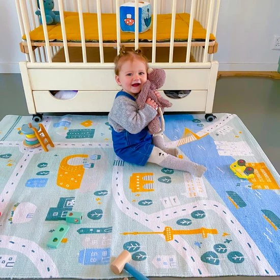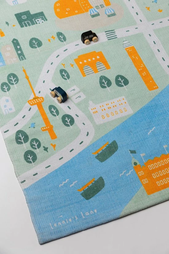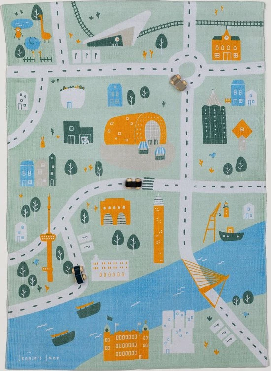 Met dit Rotterdamse speelkleed kunnen jonge stedelingen de weg op om hun leuke stad te ontdekken. Het kleed ligt mooi in de kinderkamer en is een schot in de roos als (kraam)cadeau.