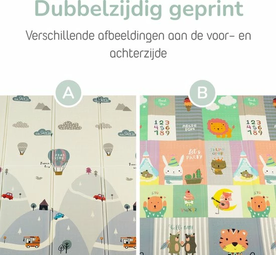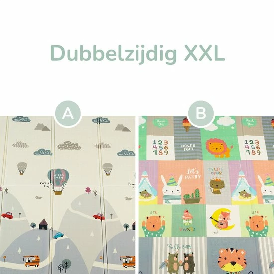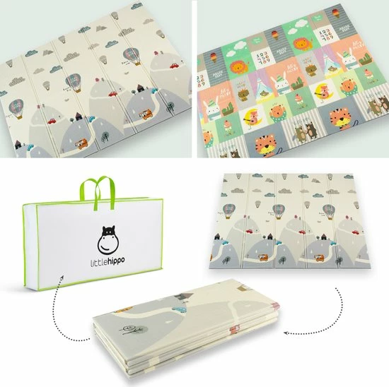 Little Hippo® Speelmat 200x180cm – Foam Speelkleed ‘Mountain’ – Dubbelzijdige XXL – Kinder/Baby Speelmat – Opvouwbaar – Anti-slip
