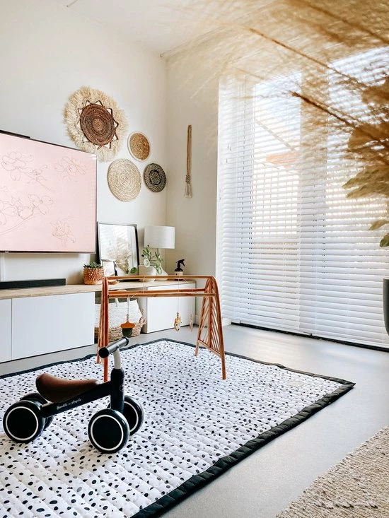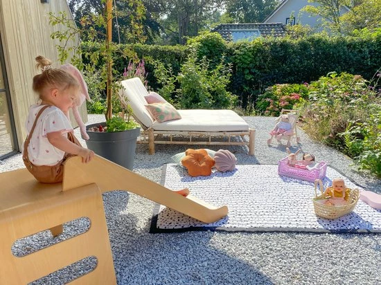 Groot speelkleed geschikt voor in de woonkamer, kinderkamer, speelhoek of gooi hem lekker buiten neer. Hij is heerlijk zacht en makkelijk schoon te maken. Creëer een mooie speelplek waar je samen kunt spelen.