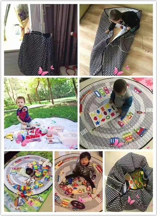 Met slechts één beweging verander je je spelmat in een speelgoedopbergtas met een handige trekkoordsluiting.