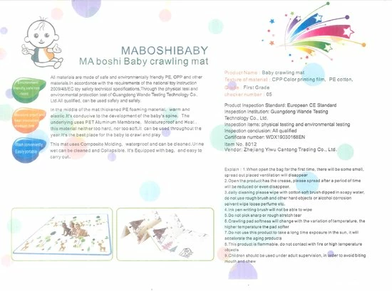 Stil: vanwege het zachte oppervlak is de mat erg stil, zodat de baby vrij op de mat kan springen.Daarom zal de baby zich niet bemoeien met de buren bij het spelen.