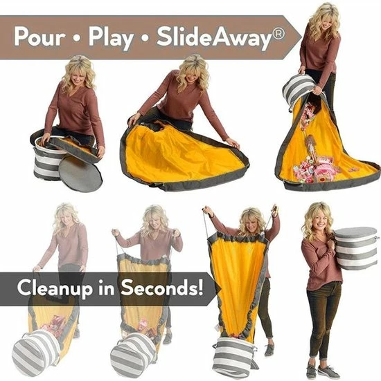 – Trek eenvoudig aan de trekkoord als je kind klaar is met spelen, waarna al het speelgoed wordt opgeslagen in de grote opbergzak.