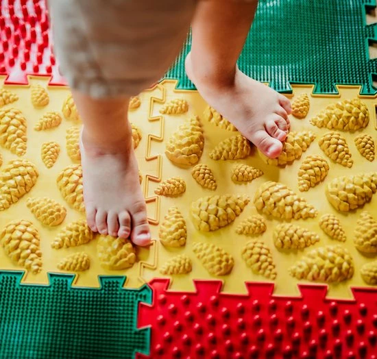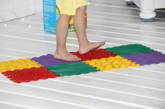 Volgens de statistieken heeft 70 procent van de kinderen aan het einde van school last van aandoeningen aan de voeten, wat een negatief effect heeft op hun gezondheid. De voetboog krijgt de juiste vorm wanneer een kind op ongelijke oppervlakken loopt tijdens zijn jonge kinderjaren. Dat gebeurt onder invloed van bepaalde spieren. Om deze juist gevormde voetboog in de huidige, moderne omstandigheden te bereiken, zijn de orthopedische ORTHO PUZZLE-matten ontwikkeld. Wanneer kinderen regelmatig op deze matten trainen.