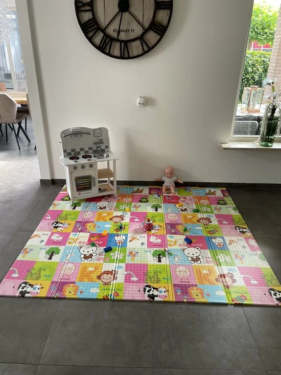 Merkloos Speelmat Baby Kinderen – Speelkleed XL – Foam – Dubbelzijdig – Opvouwbaar – 180 X 200 Cm – Dieren – 1,5 Cm Dik – Inclusief Opbergtas