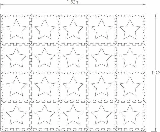 Ideale puzzelspeelmat voor op uw harde, gladde, koude vloer die er ook nog eens superleuk uit ziet! 20 grijs witte matten met uitneembare ster incl afwerkranden en opbergtas. Totale afmeting mat 152x122cm