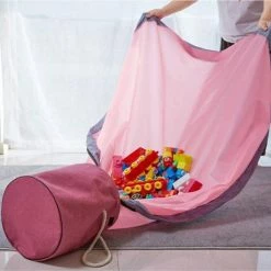 vakmanschap en aandacht voor details maken toys mand sterk en duurzaam. Het is ook gemakkelijk om met duurzame handgrepen te dragen. - Verschillend met gewone speelgoedmand, stopt de speelgoedcontainer de verspreiding van kinderspeelgoed rommel. Giet speelgoed recht op de geïntegreerde speelmat, en uw kinderen hebben exclusief een speelgoedwereld zonder enige verstoring. Als de speeltijd eindigt, hoeft u alleen maar aan de trekkoord te trekken om zo alles netjes in een mooie opbergmand te bewaren.
