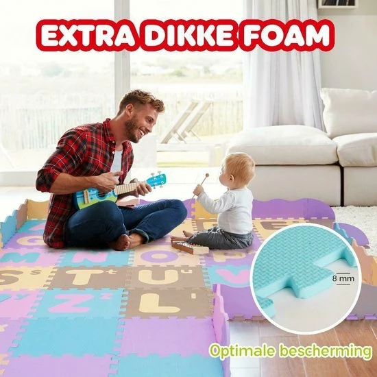 Ben je op zoek naar een hele grote & educatieve alfabet puzzelmat die veilig is voor baby’s en kleine kinderen? Deze baby speelmat is multifunctioneel in tegenstelling tot een speelkleed. Je kunt de foam speelmat met of zonder hek monteren en zo groot of klein als je wilt. Nu met extra bescherming voor je kind!