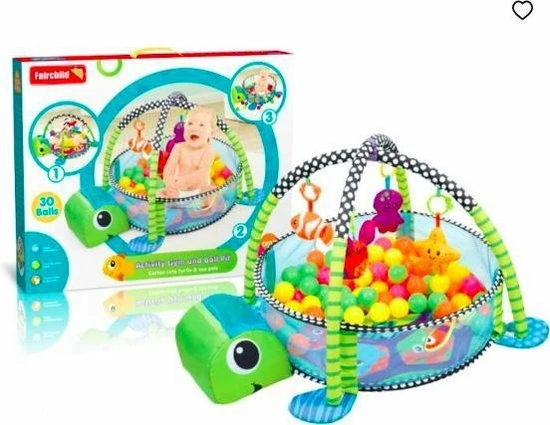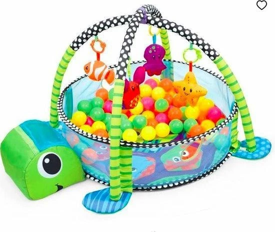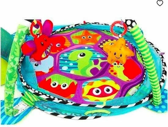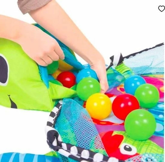 Deze speelmat zit boordevol plezier. Hij wordt geleverd met vier figuurtjes die ieder een andere unieke vorm heeft. Er zijn ook kleurrijke ballenbakballen bijgeleverd die het erg leuk en speels maken. Daarnaast is de grote speelmat die niet alleen visueel stimulerend, maar ook nog eens erg comfortabel. Wat echt uniek is, is de verstelbare pop-up mesh zijkant, die kan worden gebruikt om bijvoorbeeld de ballenbak dicht te maken tijdens het spelen.