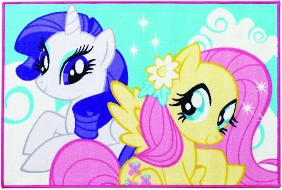 My little Pony Vloerkleed. Super leuk kleed met een afbeelding van Fluttershy en Rarity. Heerlijk het bedje uitstappen met de favoriete Pony’s die je gelijk begroeten. Zo’n lief vloerkleed geeft direct een andere sfeer in het kamertje van de My Little Pony fan.