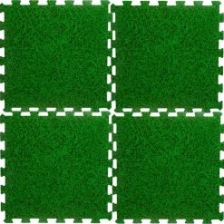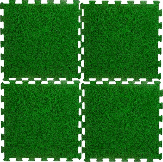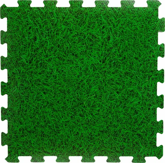 16x stuks Foam puzzelmat zwembadtegels/fitnesstegels gras. Zachte gras look a like foam puzzelmat tegels voor een zachte veilige ondergrond voor bijvoorbeeld zwembaden, om op te sporten of gewoon om lekker op te spelen. Afmeting: 50 x 50 x 0,4 cm. Geschikt voor binnen en buiten, gemaakt van weerbestendig slijtvast materiaal.