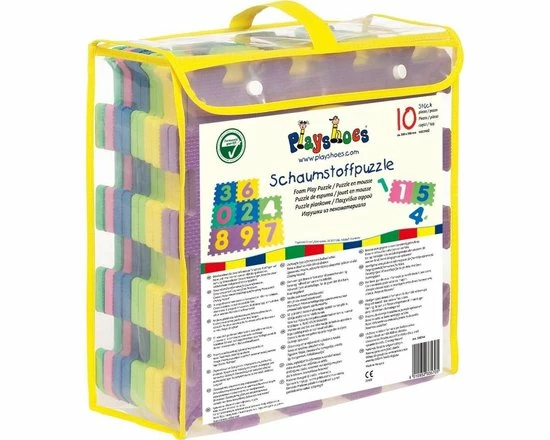 Deze puzzelmatten van Playshoes bestaan uit 10 kleurrijke matten met nummers erop. Deze puzzelmatten zijn leuk en leerzaaam voor kinderen en daarnaast stimuleert het de motoriek van de peuters. Zorg dat je de puzzelmatten goed schoonhoudt om de hygiëne te bewaken. De matten zijn als GOED beoordeeld door de ÖKO-TEST en zijn bekroond met de Plus X Award voor de hoge kwaliteit en functionaliteit. De afmeting per tegel: 30x30x1cm. Er zit een handig opbergtasje bij dit product. Geschikt vanaf 3 jaar.