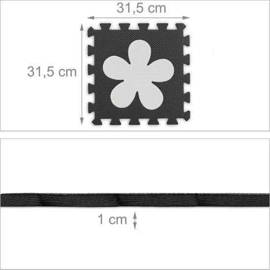 – Afmeting van een puzzelstuk H x B x D: ca. 1 x 31,5 x 31,5 cm