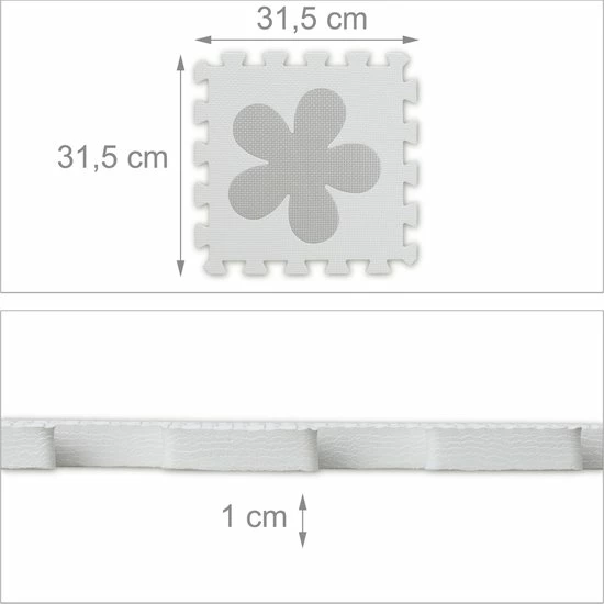 – Afmeting van een puzzelstuk H x B x D: ca. 1 x 31,5 x 31,5 cm