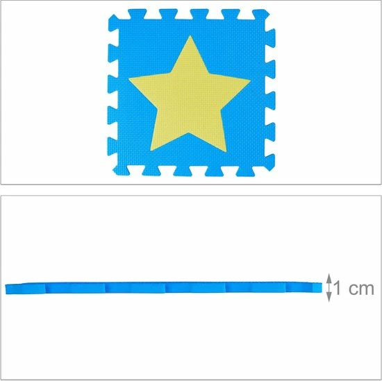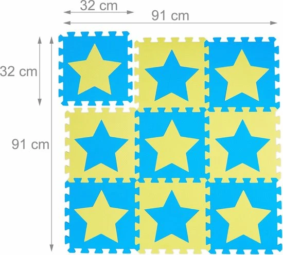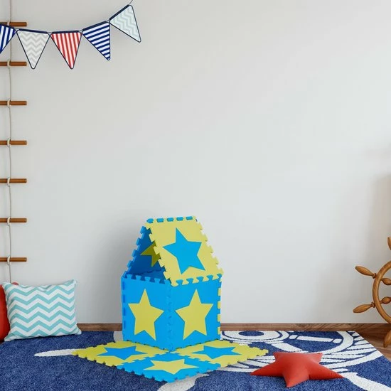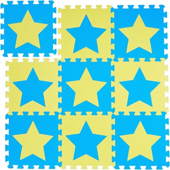Je kinderen vinden deze zachte speelmat gegarandeerd heel leuk om op te spelen. Het flexibel op te bouwen speelkleed bestaat uit 9 puzzelstukken van EVA schuim. De comfortabele vloermat is een schokabsorberende mat voor baby’s en kinderen. De tweekleurige speelmat is onderhoudsvriendelijk en vrij van schadelijke stoffen. De verwijderbare sterren zijn vooral voor kleine kinderen een geweldige belevenis. De babymat biedt veel grip en is daarom perfect om op te leren kruipen.