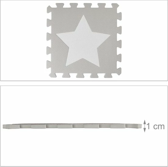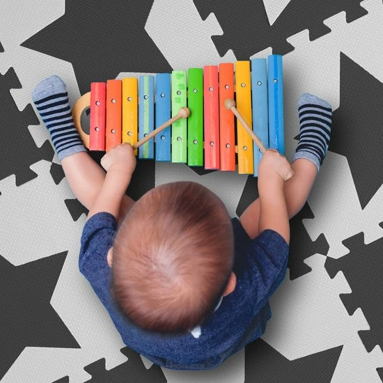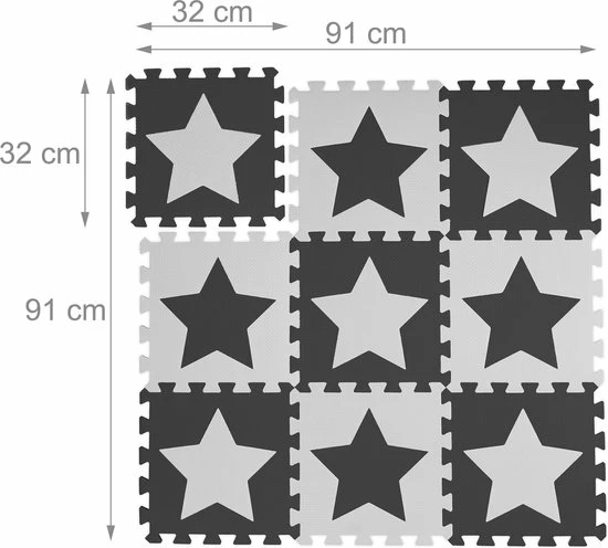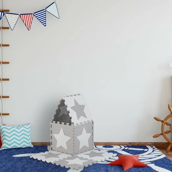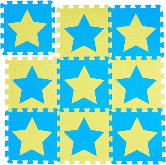 Je kinderen vinden deze zachte speelmat gegarandeerd heel leuk om op te spelen. Het flexibel op te bouwen speelkleed bestaat uit 9 puzzelstukken van EVA schuim. De comfortabele vloermat is een schokabsorberende mat voor baby’s en kinderen. De tweekleurige speelmat is onderhoudsvriendelijk en vrij van schadelijke stoffen. De verwijderbare sterren zijn vooral voor kleine kinderen een geweldige belevenis. De babymat biedt veel grip en is daarom perfect om op te leren kruipen.