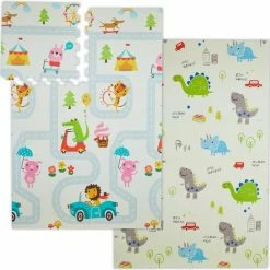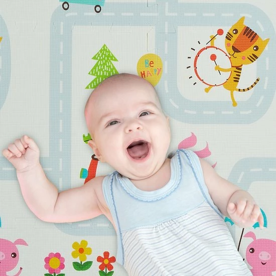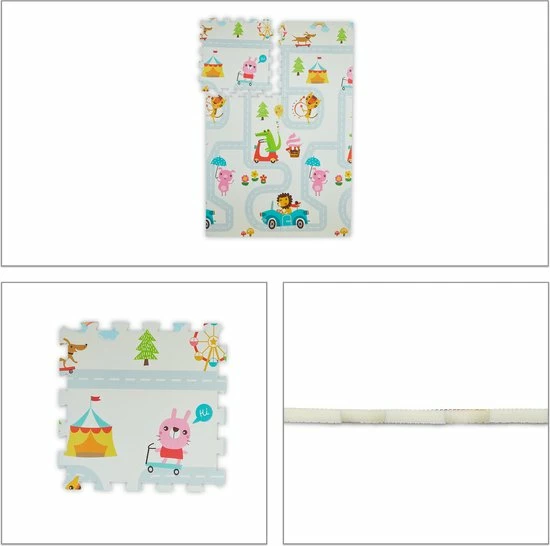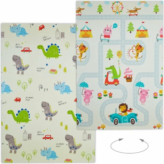 Aan deze vrolijke speelmat die zowel aan de boven- als aan de onderkant is